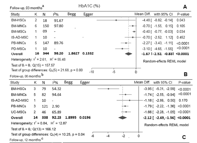 在所有評估的科學研究中,與對照組相比,接受干細胞治療的患者空腹血糖水平較低。移植后3個月,糖化血紅蛋白(HbA1C)水平也下降,該參數通常用于糖尿病患者的血糖控制,反映了檢查前兩個月的平均血糖水平,這為干細胞的療效提供了進一步的證據。