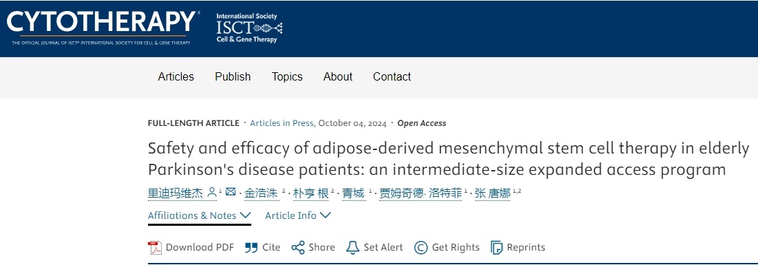 近期,美國德克薩斯州糖城希望生物科學研究基金會在國際期刊雜志《CYTOTHERAPY》上發表了一篇“Safety and efficacy of adipose-derived mesenchymal stem cell therapy in elderly Parkinson’s disease patients: an intermediate-size expanded access program”(脂肪間充質干細胞療法對老年帕金森病患者的安全性和療效:一項中等規模的擴大準入計劃)的研究綜述[1]。