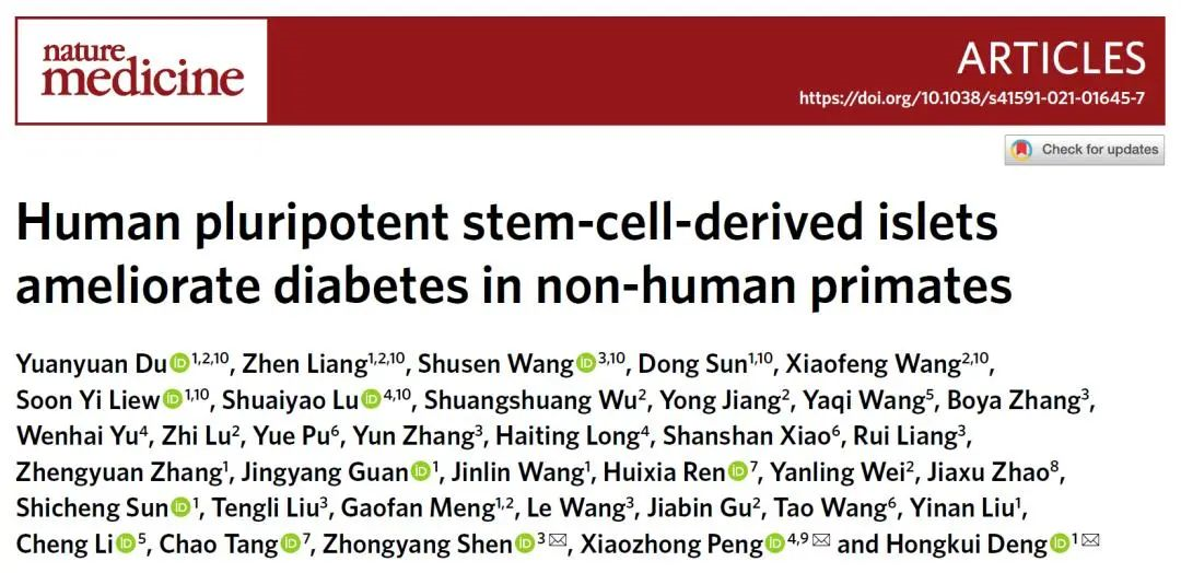 作為國際首個在非人靈長類模型上系統(tǒng)地評價人多能干細胞來源的胰島細胞治療糖尿病可行性的研究,本研究在非人靈長類動物模型上證明了人多能干細胞分化的胰島細胞在糖尿病治療中的安全性和有效性。
