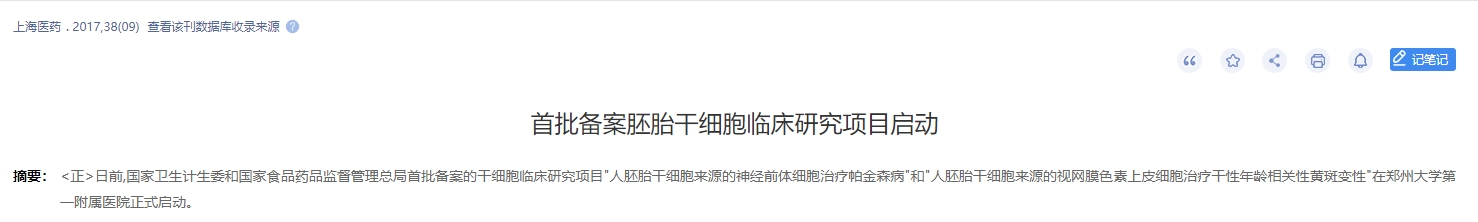 2017年,首批備案胚胎干細胞臨床研究項目啟動。