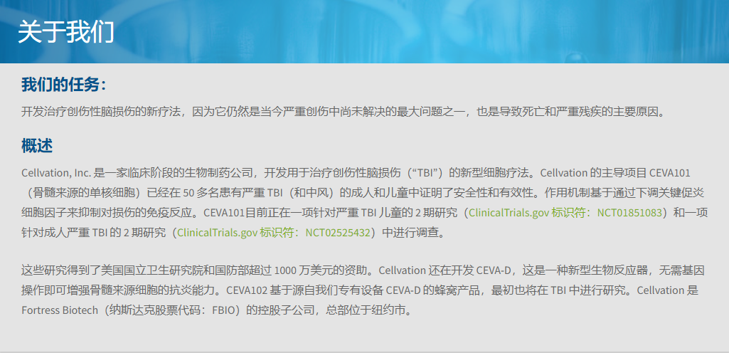 在早期的臨床研究之后,自體BMMNCs (CEVA101) 的開發(fā)被美國食品和藥物管理局 (FDA) 授予再生醫(yī)學(xué)先進(jìn)療法(RMAT) 治療TBI的資格。CEVA101目前正處于治療兒童和成人急性重度TBI的2期臨床開發(fā)階段,盡管迄今為止尚未公布結(jié)果。