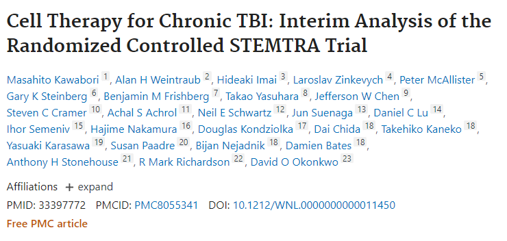2021年,Kawabori等人發(fā)表了為期1年的隨機(jī)、雙盲、對照、2期STEMTRA研究(NCT02416492)的6個月中期數(shù)據(jù)。