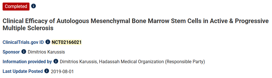 兩項臨床研究評估了MSCs對ALS的療效。