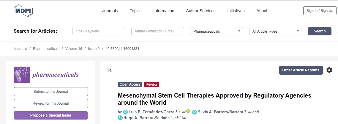 參考資料:Fernández-Garza, L.E.; Barrera-Barrera, S.A.; Barrera-Salda?a, H.A. Mesenchymal Stem Cell Therapies Approved by Regulatory Agencies around the World. Pharmaceuticals 2023, 16, 1334. https://doi.org/10.3390/ph16091334