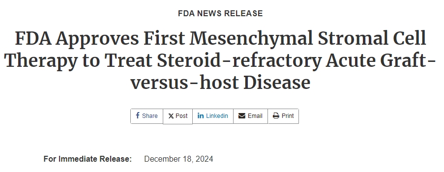 FDA批準Ryoncil間充質干細胞藥物上市:是具有歷史性意義的一步!