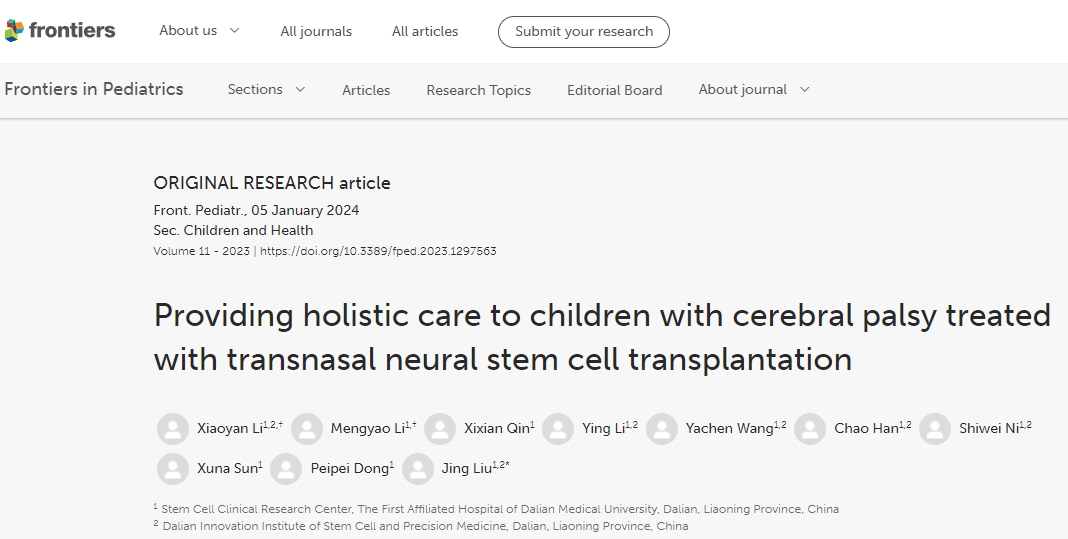 參考資料:Li X, Li M, Qin X, Li Y, Wang Y, Han C, Ni S, Sun X, Dong P and Liu J (2024) Providing holistic care to children with cerebral palsy treated with transnasal neural stem cell transplantation. Front. Pediatr. 11:1297563. doi: 10.3389/fped.2023.1297563。