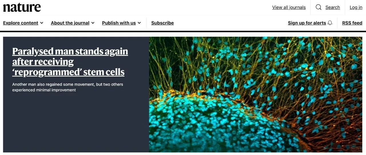 2025年3月21日,慶應(yīng)義塾大學(xué)在新聞發(fā)布會(huì)上公布了岡野榮之教授團(tuán)隊(duì)在iPS干細(xì)胞治療脊髓損傷領(lǐng)域取得的新突破。在首批接受治療的4名因脊髓損傷完全癱瘓患者中,一人已實(shí)現(xiàn)無支撐站立并開啟行走訓(xùn)練,另一人肢體活動(dòng)能力顯著恢復(fù),其余兩人雖有微弱改善,但這一成果仍以突破性進(jìn)展之姿登上《Nature》雜志頭條。