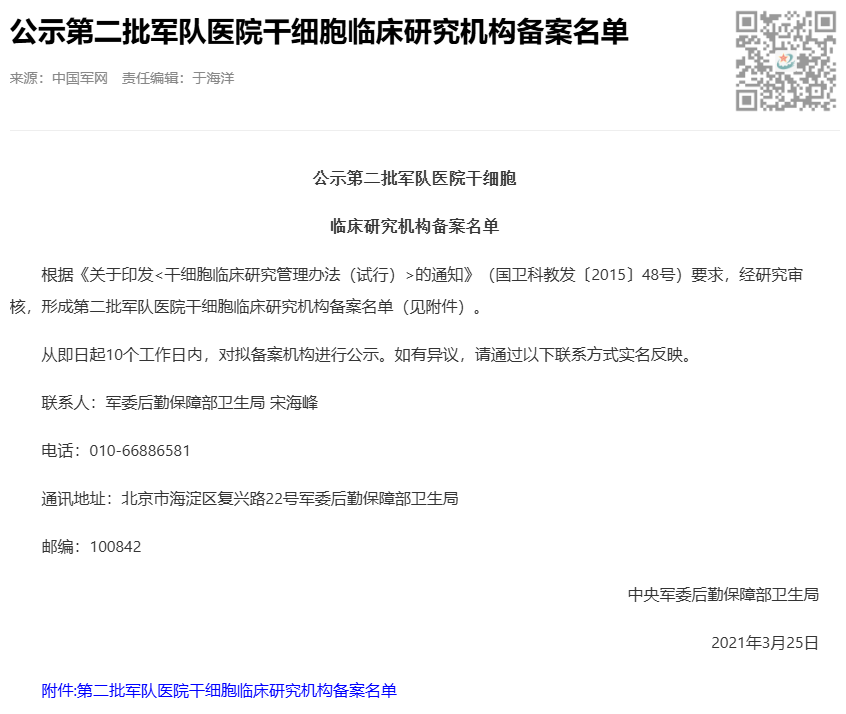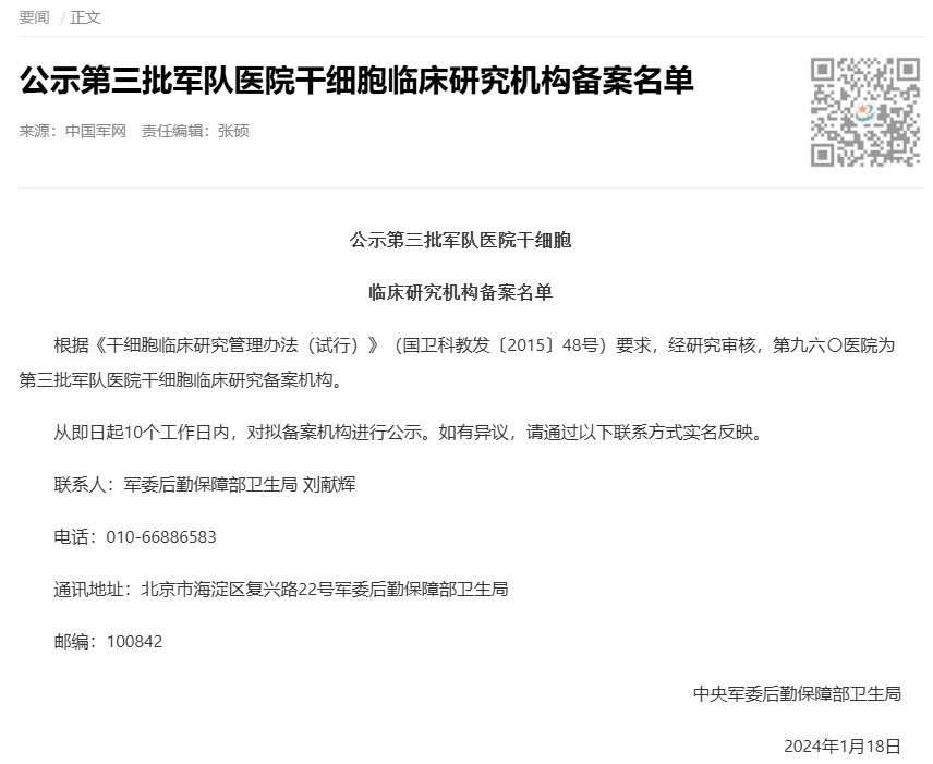 近日傳來好消息,根據《干細胞臨床研究管理辦法(試行)》(國衛科教發〔2015〕48號)要求,經過中央軍委后勤保障部衛生局的嚴格審核,全國有23家軍隊醫院獲得了干細胞臨床研究的備案資格。這標志著中國在干細胞研究和應用方面邁出了堅實的一步,同時也彰顯了軍隊醫療機構在此領域的領先地位。
