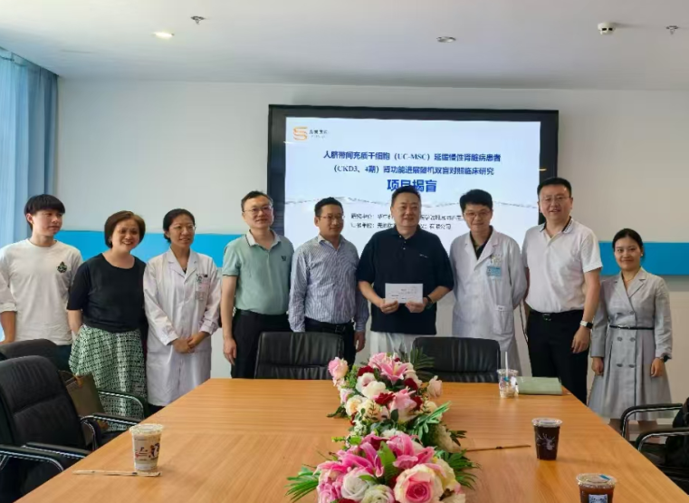 2025年5月12日,該院腎內科開展的“人臍帶間充質干細胞(UC-MSC)延緩慢性腎臟病患者(CKD3、4期)腎功能進展隨機雙盲對照臨床研究”(ClinicalTrials.gov ID:NCT05512988)召開。該項目是全球首個國際注冊的干細胞治療慢性腎臟病的隨機雙盲對照臨床研究。