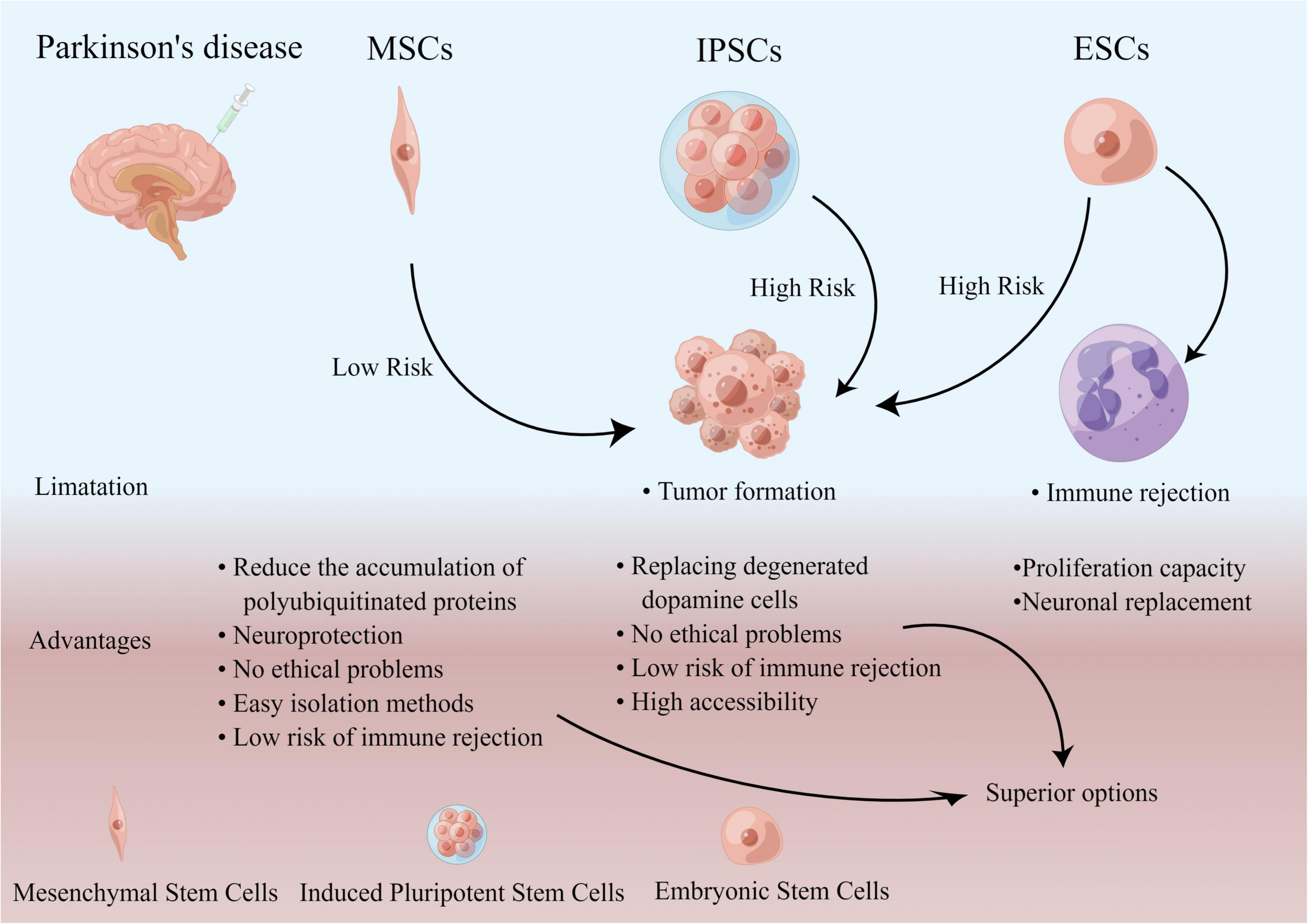 帕金森病患者的細胞療法有利于改善帕金森病的運動癥狀。同時,未來的重點應放在探索篩選適合移植患者的機制,尋找最適合帕金森病患者的細胞,以及如何安全高效地植入細胞。為了解決這一重要問題,需要開發盡可能準確地反映帕金森病病理過程的適當模型。iPSC是這條道路上的真正突破。我們的結果需要額外的大樣本長期前瞻性臨床研究。隨著干細胞療法最佳實踐指南的建立。