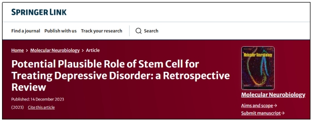 [1]Zhuo Chang· Qing yi Wang· Lu hao Li· Bei Jiang· Xue ming Zhou· Hui Zhu· Yan ping Sun·Xue Pan · Xu xu Tu· Wei Wang· Chen yue Liu· Hai xue Kuang. Potential Plausible Role of Stem Cell for Treating Depressive Disorder: a Retrospective Review. Doi:10.1007/s12035-023-03843-5.