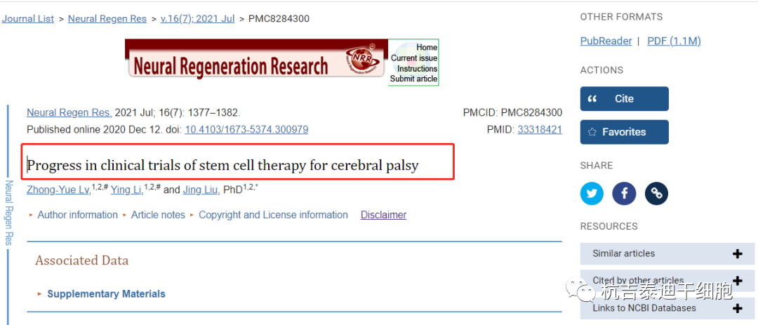 2021年大連醫科大學第一附屬醫院干細胞臨床研究中心在美國國家國立衛生研究院網站子刊《Neural Regen Res》期刊上發表了一篇關于《干細胞治療腦性癱瘓的臨床試驗進展》綜述,臨床研究表明,傳統的物理療法和康復療法不能單獨治愈腦癱。干細胞移植是一種新興療法,由于干細胞的再生和無限增殖能力,已應用于多種神經系統疾病的臨床試驗。
