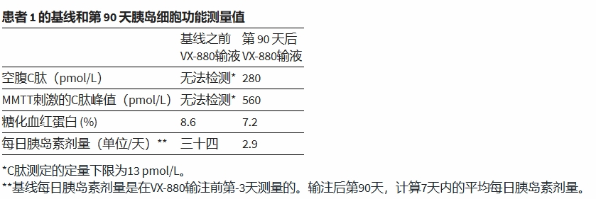 2021年10月18日,Vertex宣布,接受VX-880治療的1/2期臨床試驗首位患者的第 90天療效呈陽性。