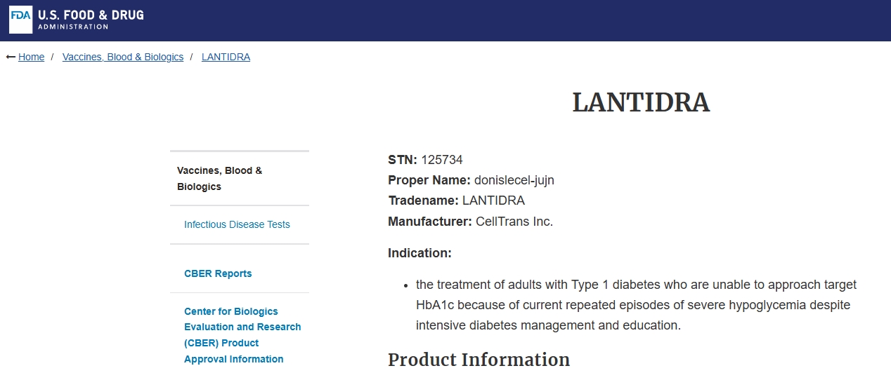 隨著研究的推進(jìn),監(jiān)管機(jī)構(gòu)的批準(zhǔn)也開(kāi)始陸續(xù)到來(lái)。2023年,F(xiàn)DA批準(zhǔn)了donislecel(Lantidra),這是首個(gè)針對(duì)1型糖尿病成人嚴(yán)重低血糖患者的同種異體胰島細(xì)胞療法。該療法源自已故捐贈(zèng)者的胰腺,將胰島細(xì)胞注入肝臟。在臨床研究中,相當(dāng)一部分接受者在不同時(shí)間實(shí)現(xiàn)了胰島素依賴(lài)。
