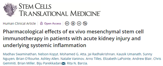 2021年,美國研究團隊在《干細胞轉化醫學》上發布了一項Ib期臨床試驗結果,初步證實新型離體使用的間充質干細胞產品(SBI-101)在嚴重急性腎損傷患者中的安全性和有效性。