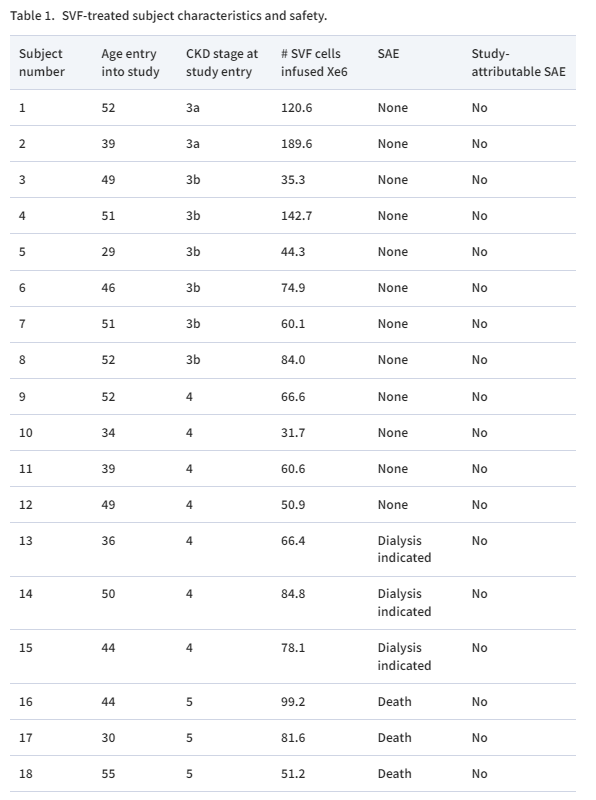 沒(méi)有死亡歸因于研究侵入性操作或SVF細(xì)胞輸注。