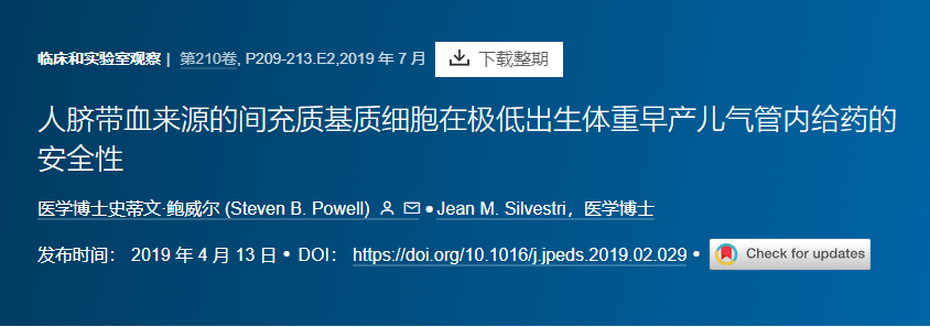 2019年,在美國進行了一項使用氣管內UCB-MSC移植的類似1期劑量遞增研究,其中12名妊娠28周前出生的極低出生體重嬰兒對治療的耐受性良好。
