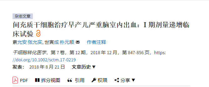 間充質干細胞治療BPD、IVH、HIE臨床試驗報道