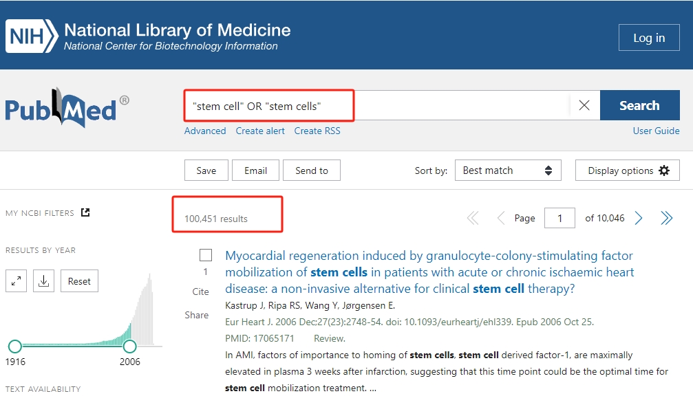 盡管起步卑微,干細胞界在本月實現了一個令人震驚的里程碑,有關干細胞的科學論文數量猛增至50萬篇以上。要親自驗證這一發現,請在PubMed上使用搜索短語(”干細胞 “和 “干細胞”),如下所示。
