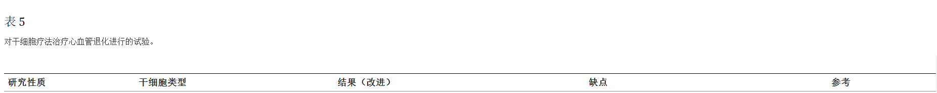 干細胞治療心血管疾病的顯著臨床前試驗已在表4。