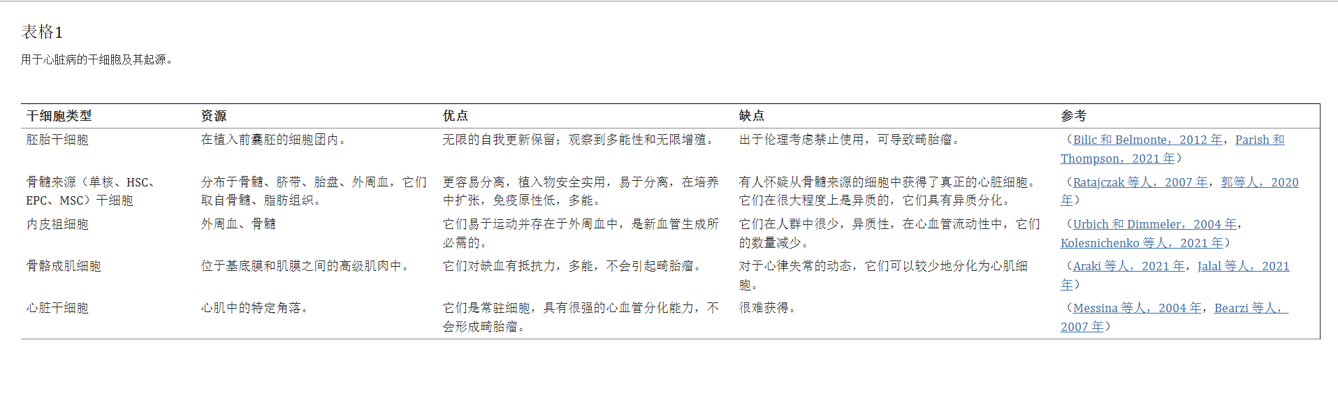 用于治療心血管疾病的干細胞來源及類型
