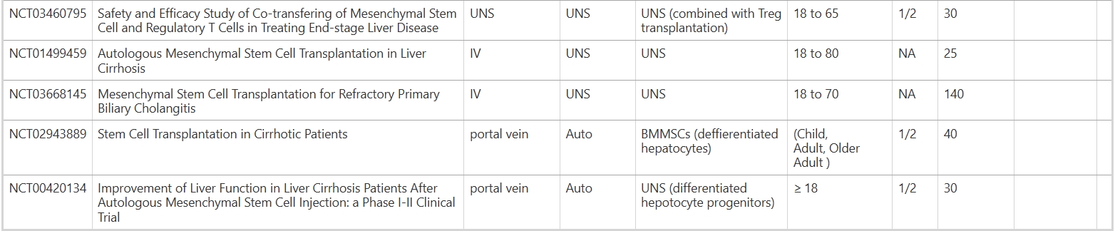 間充質干細胞治療終末期肝病(肝硬化)的臨床試驗