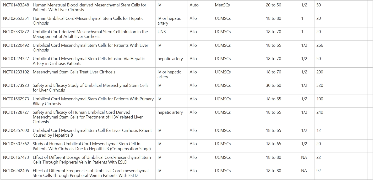這些試驗展示了MSC療法的應用范圍,通過特定的劑量和給藥策略,可以應對慢性肝病的復雜挑戰,并提供新的再生治療選擇。