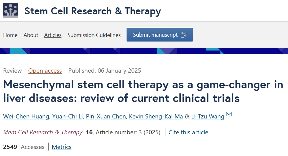 [1]Huang, WC., Li, YC., Chen, PX. et al.Mesenchymal stem cell therapy as a game-changer in liver diseases: review of current clinical trials. Stem Cell Res Ther16, 3 (2025). https://doi.org/10.1186/s13287-024-04127-y