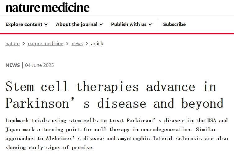 2025年4月,《自然》(Nature)雜志同時刊登了兩項干細胞治療帕金森病的重量級研究,展示了干細胞療法的巨大潛力:不僅安全有效,還有望真正實現(xiàn)對多巴胺神經(jīng)元的修復。同時也表明了,美國和日本利用干細胞治療帕金森病的試驗具有里程碑意義,標志著神經(jīng)變性細胞療法的轉折點。治療阿爾茨海默病和肌萎縮性脊髓側索硬化癥的類似方法也初露端倪。