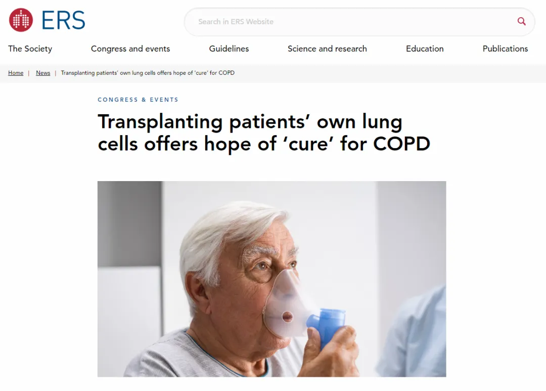 9月27日至10月1日,在全球呼吸領域頂級會議——第35屆歐洲呼吸學會(European Respiratory Society,ERS)年會上,一項標志著慢性阻塞性肺疾病(COPD)治療進入再生醫學新紀元的突破性臨床研究正式公布。[10]