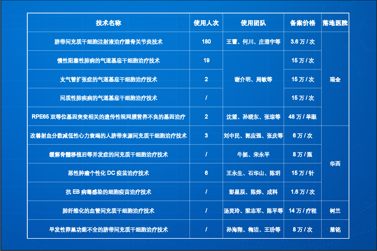 - 膝骨關節炎的臍帶MSC注射液,在瑞金醫院已服務180人次(3.6萬/次);