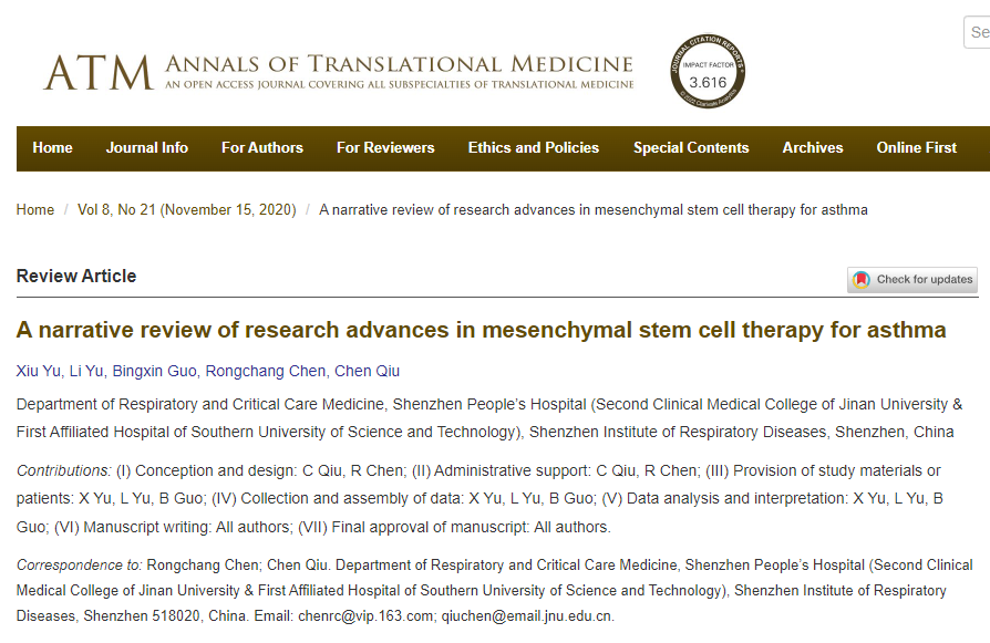 間充質干細胞 (MSC) 的特點是具有多向分化的潛力,并且可以發揮免疫調節和抗炎作用。近年來,其在治療哮喘方面的作用日益得到認可。在這篇綜述文章中,深圳市人民醫院試圖總結間充質干細胞對幾種類型哮喘的治療作用的最新進展,并解釋了間充質干細胞治療哮喘病的相關機制。