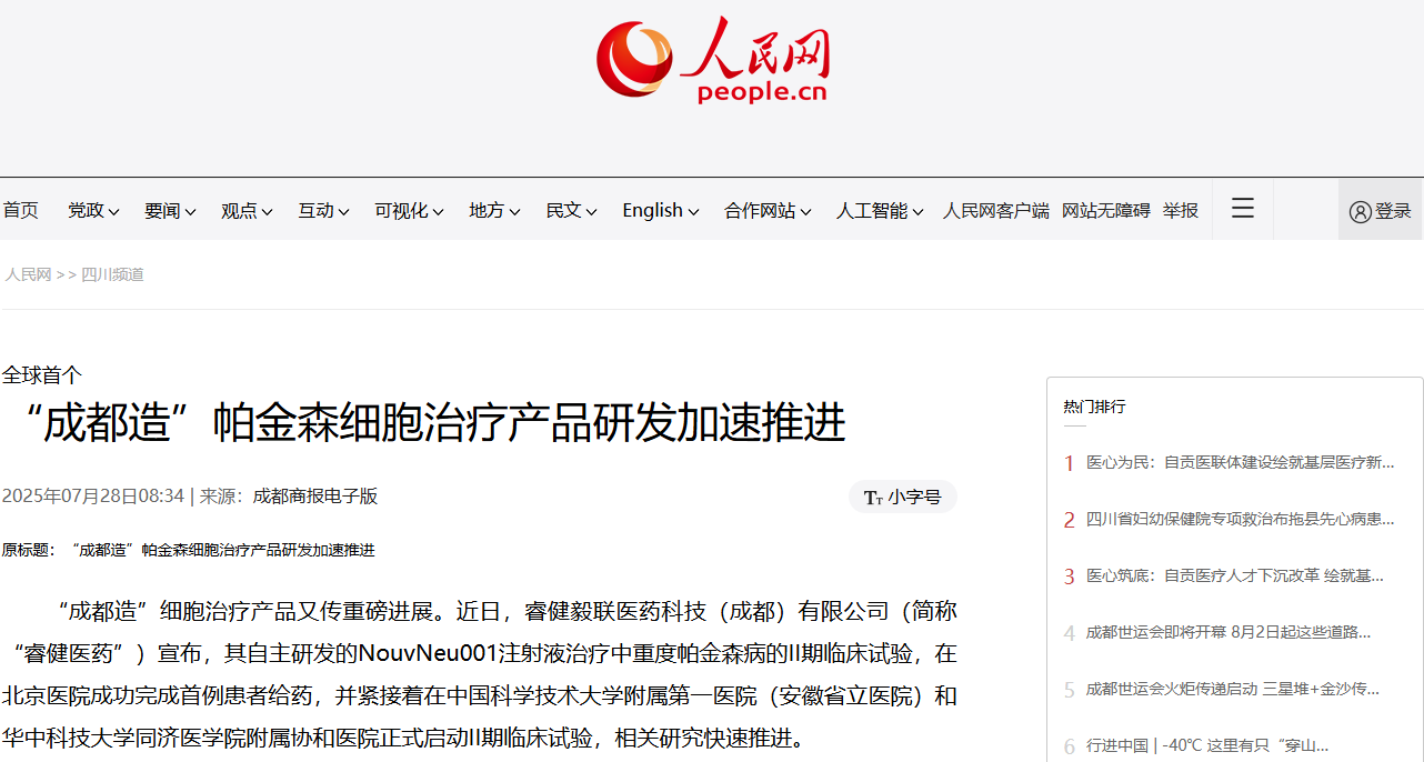 在二期臨床試驗方面,中國的創新力量表現突出。睿健醫藥自主研發的NouvNeu001注射液,作為一款誘導性多能干細胞(iPSC)衍生的通用型細胞治療產品,已于2025年7月成功完成首例患者給藥,標志著其正式進入II期臨床試驗階段。