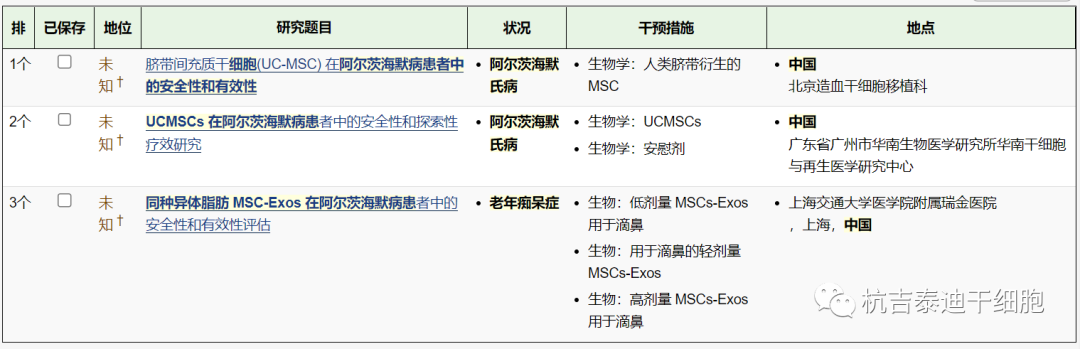 其中在中國干細胞治療帕金森病的臨床試驗有3項。