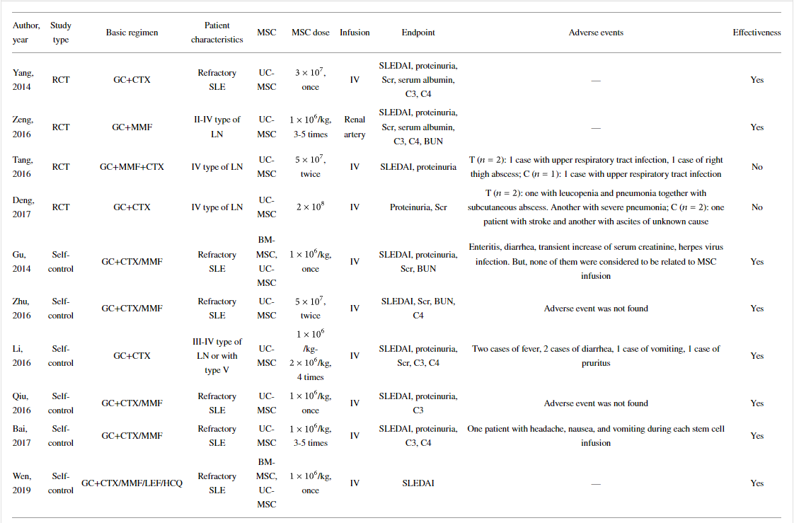 本薈萃分析旨在評估間充質干細胞是否可以成為治療系統性紅斑狼瘡的新療法,具有良好的療效和安全性。