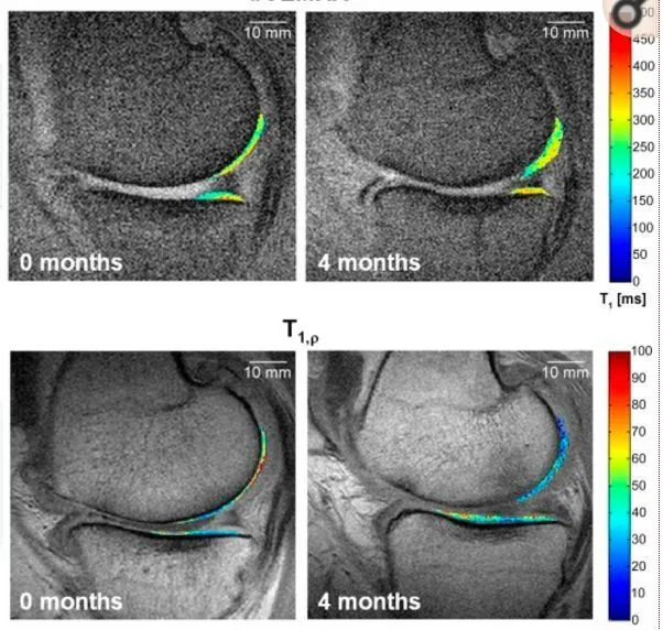 ▲如上圖,MRI顯示顏色越藍,代表軟骨質量越好,說明修復良好。另外,臨床試驗過程中沒有發現不良反應。