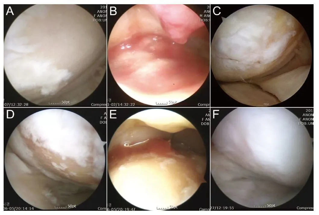 ▲圖中A-C為51歲男性膝關節鏡,D-F為54歲女性膝關節鏡。