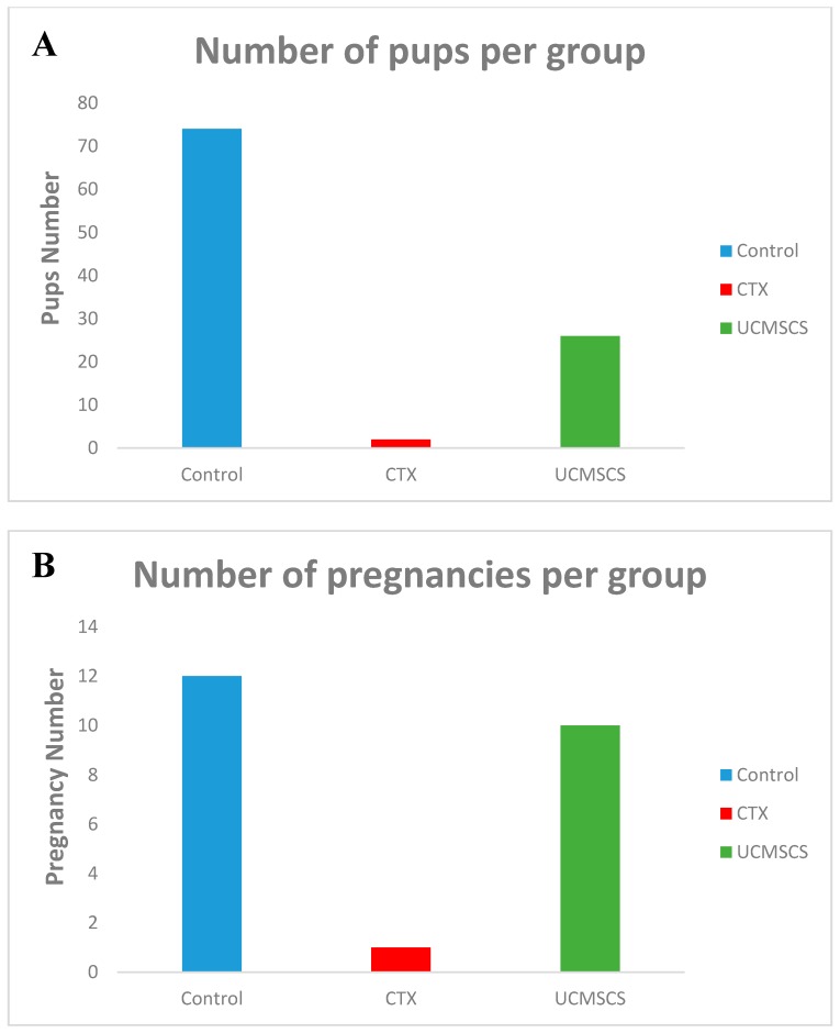 材料和方法:一項臨床前小鼠病例與載體對照隨機研究。三組中的每組都同時進行了兩個實驗。首先是證明UCMSCs恢復卵巢功能的能力。第二個是證明提高生育能力。總共36只小鼠被隨機分配;6只小鼠分成3組,每組進行2次實驗。第1組(對照組)、第2組(假化療)、第3組(干細胞)。