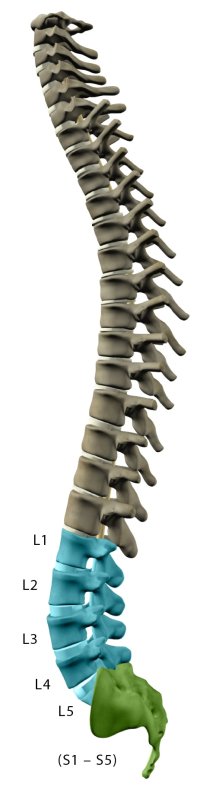 骶骨(骶骨)位于腰椎下方、尾骨上方,稱為尾骨。融合在一起的五塊骨頭組成了三角形的骶骨,這些骨頭編號(hào)為S-1至S-5。每個(gè)數(shù)字對(duì)應(yīng)于脊髓該部分的神經(jīng)。