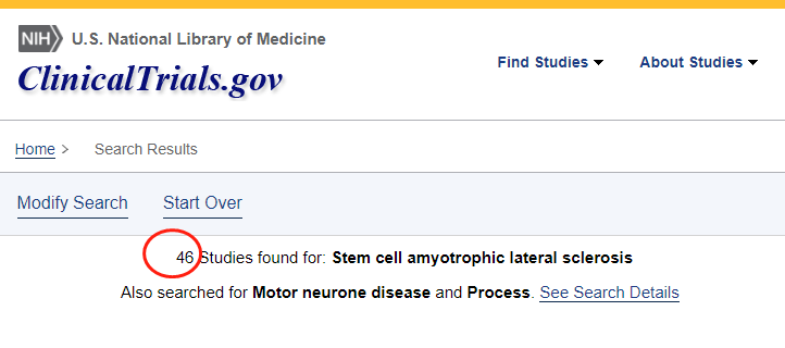 截止2022年11月,在美國(guó)國(guó)立衛(wèi)生研究院的最大臨床試驗(yàn)注冊(cè)庫(kù)clinicaltrials.gov網(wǎng)站上注冊(cè)的有關(guān)干細(xì)胞治療漸凍癥的臨床研究項(xiàng)目有46項(xiàng)。