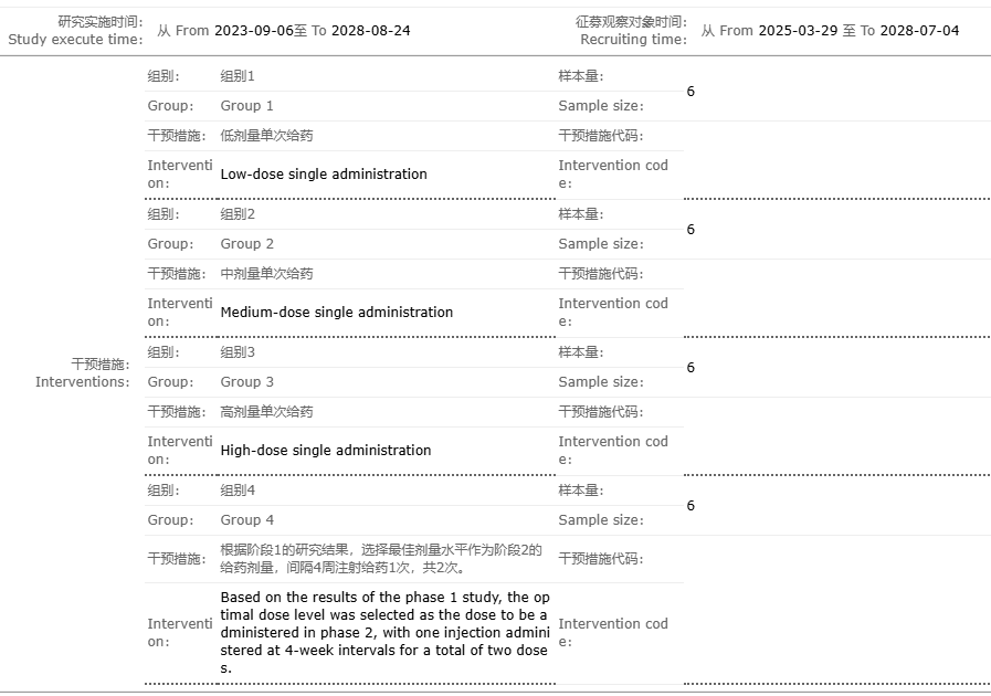 整個試驗(yàn)自2023年9月6日啟動,預(yù)計將持續(xù)至2028年8月24日,患者征募時間從2025年3月29日至2028年7月4日。
