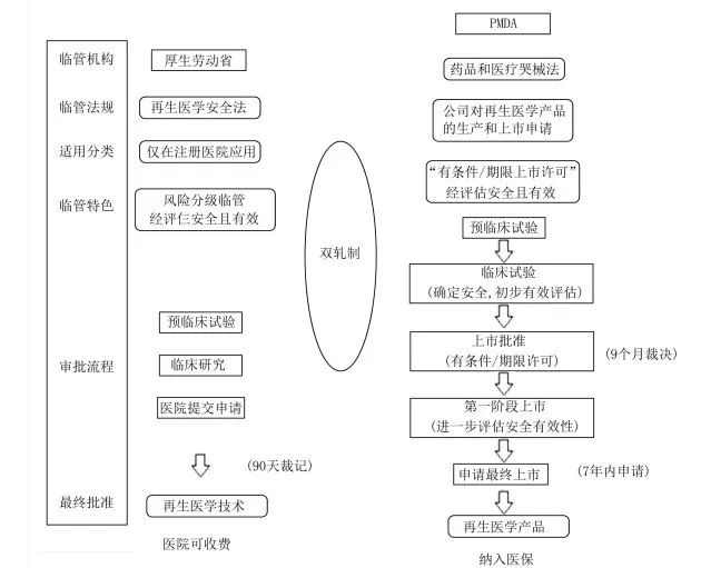 通過分析日本監管法規可以發現,日本干細胞采取醫療技術和新藥雙軌制監管,通過設立職責明確的監管機構、制定分類別的法律法規、打通全流程的監管審批步驟,構建了兩條完整的監管軌道。